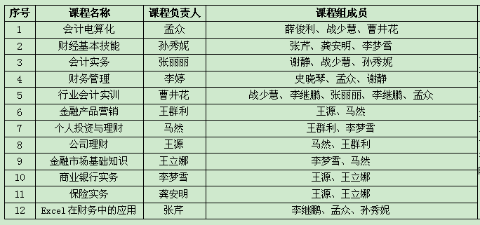 根据《课程(组)负责人制度实施办法》和刘波校长的工作安排,财贸学院于12月11日至19日完成了第一批课程建设规划。因开设的专业课较多,财贸学院特选取了12门专业核心课首批实施课程规划。首先由课程负责人召集课题组成员通过教研研讨的方式进行了充分讨论,老师们结合淑云校长开会传达的精神,深入思考了课程建设工作,进一步研究本门课程教什么、如何教、建设什么、怎么建设、学生学习方面的指导方案等问题,为打造一流的专业群、一流的师资队伍建言献策。随后课程负责人统一了标准,精工细作,撰写出具有财贸特色的课程建设初步规划,并在会计教研室主任李继鹏和金融教研室主任马然的指导下熬至深夜进行了多次修改,最后在沈德荣院长的审核指导下完成了课程规划。