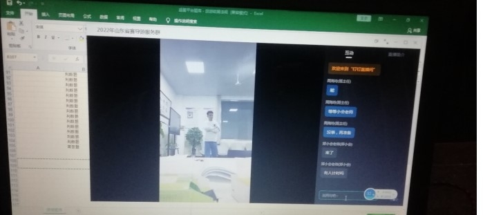 指导教师每天晚上七点,在钉钉直播间以直播的形式检查选手王通的备赛情况。因为疫情的原因,网络直播有点卡,但不影响老师和选手的热情。每次王通讲解的时候,会有一名学生现场计时,每次讲完一个题目,周海玲和郑小会老师会通过连麦或者打字的形式对王通进行指导,包括上下场的礼貌礼节、发音、句子是否通顺,眼神和表情等问题。