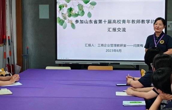 会议伊始,王君萍主任以《潜心教研勤切磋,助力共同成长》拉开了会议的帷幕,结合参加山东省高校创新创业类精品微课比赛并获得二等奖的过程,围绕比赛方案中的关键变化、比赛参赛材料的准备方法、教学设计与实施、教学反思等方面分享了自己宝贵的参赛经验。闫英梅老师则结合参加山东省第十届高校青年教师教学比赛的经验心得进行了汇报交流。各位参会教师也针对教学比赛的疑惑和难点作了交流发言。大家表示,参赛的过程就是一个逼迫自己尽快成长为一个合格教师的过程,比赛让青年教师丰富了教学经验、增加了教学技巧、提升了教学能力、锻炼了上“大讲台”的勇气和毅力。今后,将结合所学所长,进一步提升“用学术讲故事”的能力。