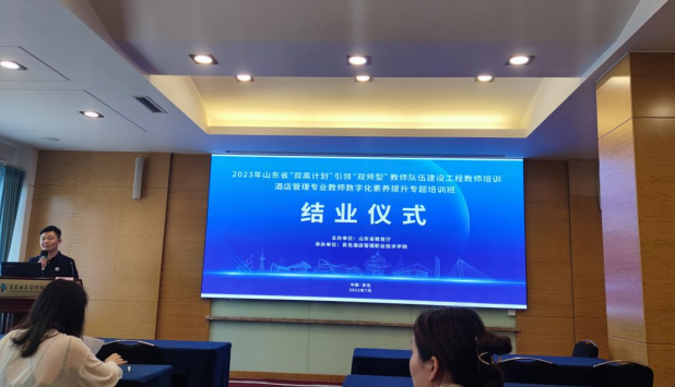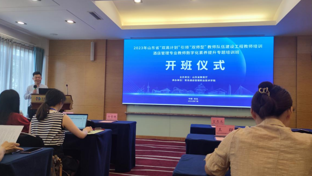 2023年7月11-7月14日,由山东省教育厅主办、青岛酒店管理职业技术学院承办的2023年度“双高计划”引领“双师型”教师队伍建设工程教师培训项目“酒店管理与数字化运营专业骨干教师数字化素养提升专题培训(高职)”在青岛如期举行,商学院专职教师郑小会于7月11日准时到达指定酒店参会,7月12日早上8点半准时参加开班仪式、合影留念等环节。