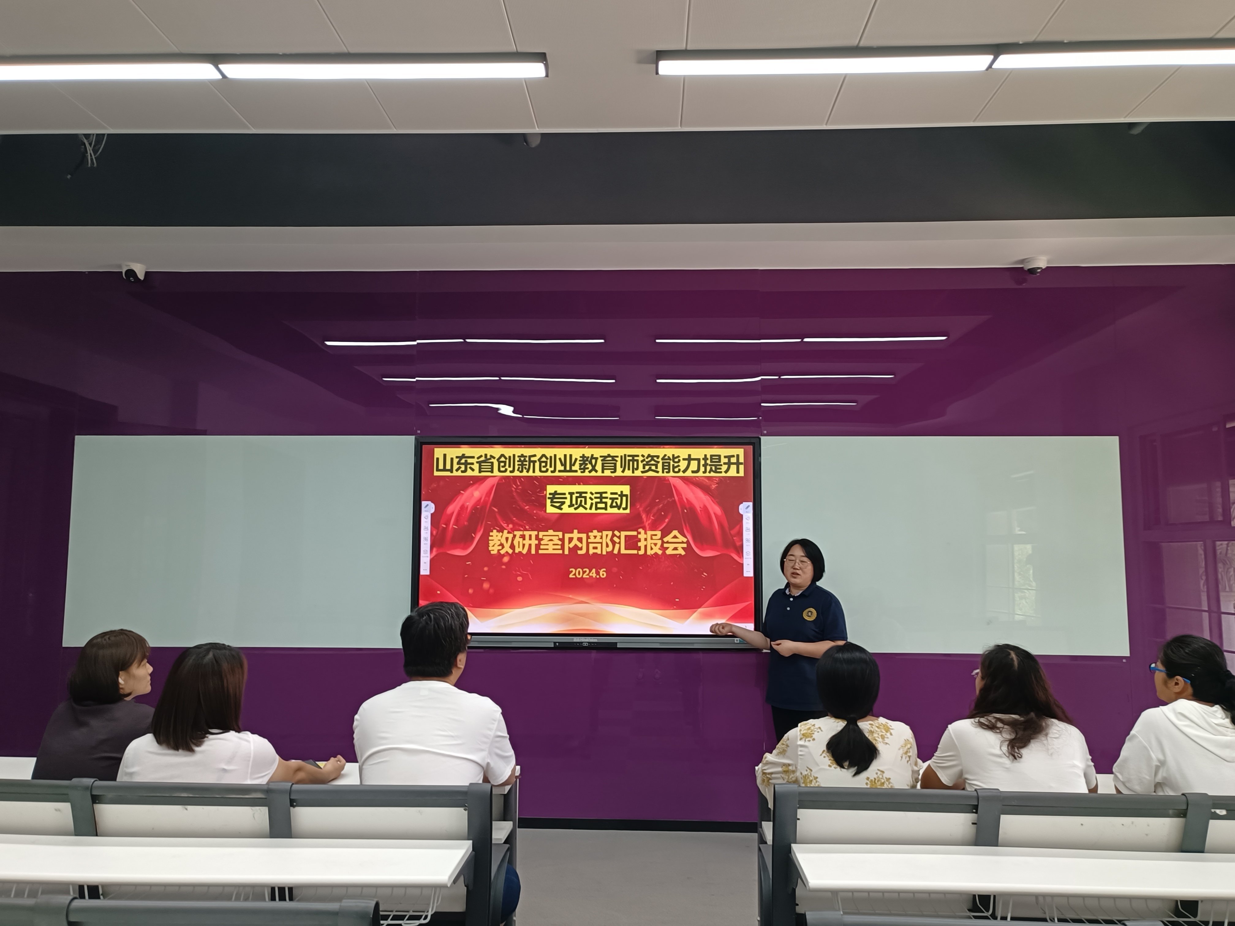 6月24日上午10:00,商学院工商管理教研室在吉纯楼403组织召开山东省创新创业教育师资能力提升专项活动内部汇报会,本次会议由王君萍主任负责主持和分享,教研室全体老师参加会议,共同研究创新创业教育课程体系建设、创新创业类竞赛项目来源与选题策略、商业计划书撰写及路演技巧等内容。