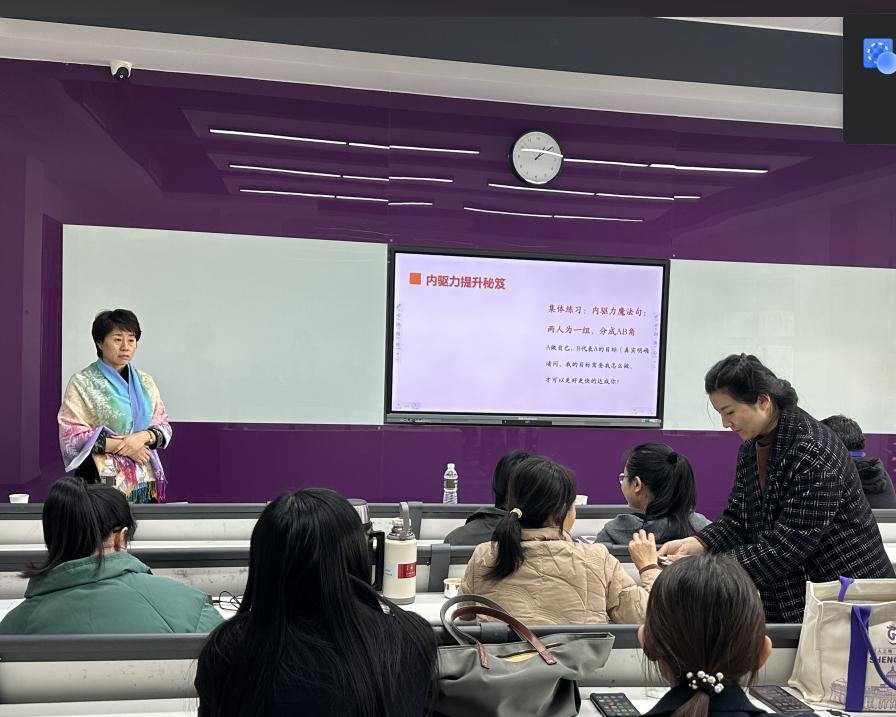 王金红女士首先分享了她的职业经历,她如何从一个普通员工成长为国企的管理者,以及在这个过程中如何激发和维持自己的内驱力。她强调,内驱力是个人成长和职业成功的关键,它能够帮助人们克服困难,实现自我超越。王金红女士的分享不仅包含了理论的深度,还结合了实际案例,让在场的老师们深受启发。