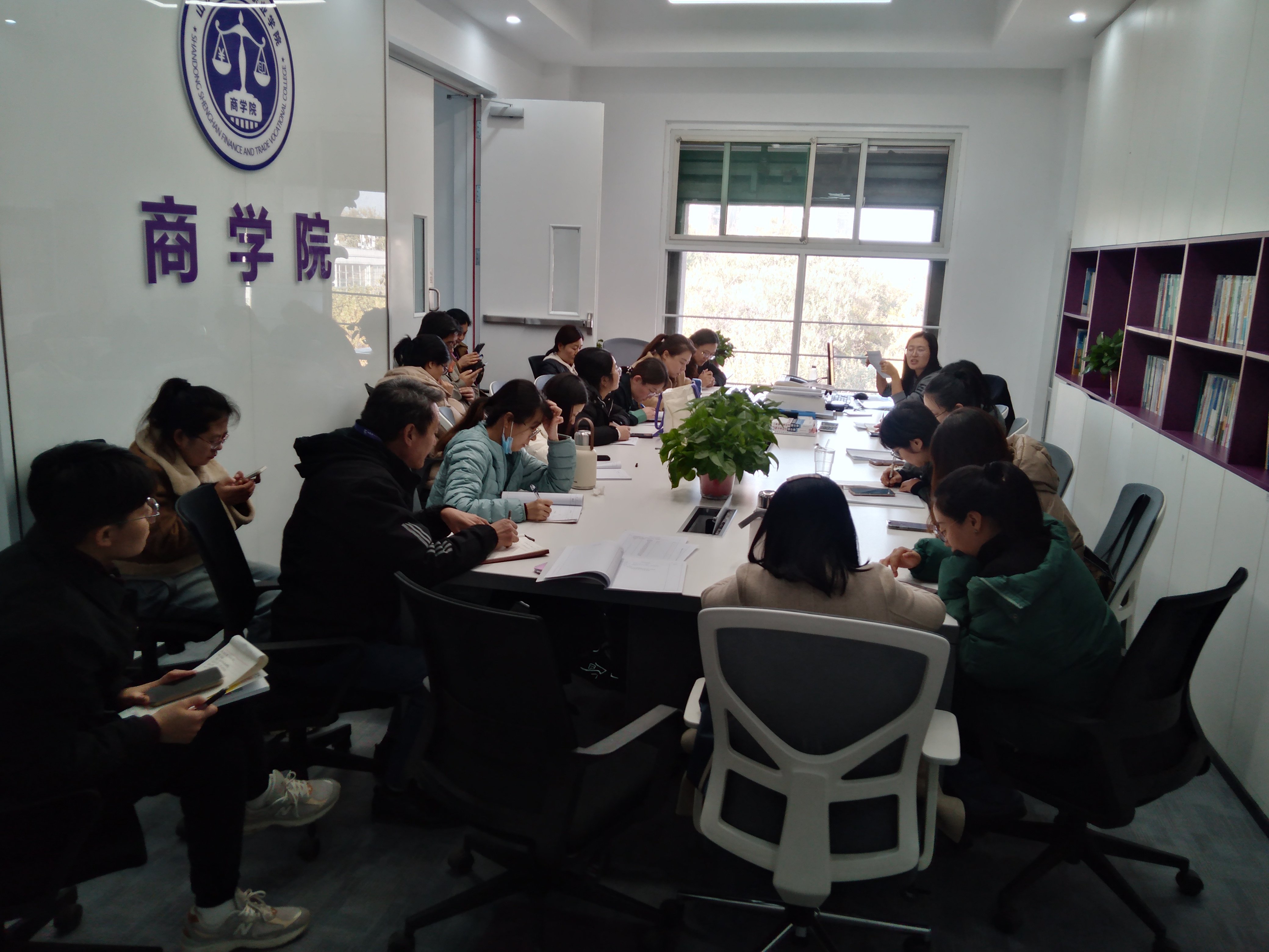 2024年11月22日下午,商学院在吉纯楼415会议室召开期末考试工作部署会,会议由教学秘书张丙英主持,商学院全体专职教师参加会议。