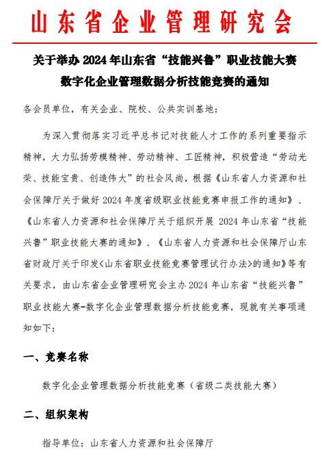 关于举办 2024 年山东省“技能兴鲁”职业技能大赛数字化企业管理数据分析技能竞赛的通知