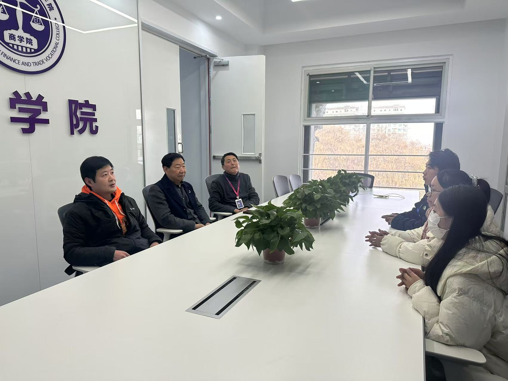 2024年12月13日,山东圣翰财贸职业学院商学院迎来了两位重要嘉宾:国家粮食和物资储备局山东局原机关党委书记马德民和山东省青年作家协会副秘书长、齐鲁文化教育网总编张振峰。两位嘉宾到访商学院,与学生会部分学生干部进行了深入的座谈交流,并参观了学院的多个教学与实践基地。