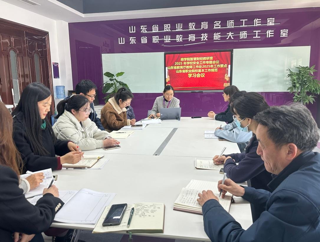 会议还深入学习了《山东省职业院校基本工作规范》。文件从教学管理、学生管理、师资队伍建设、校企合作等方面提出了明确要求,为职业院校的高质量发展提供了指导。教研室教师们结合智慧财经专业的特点,探讨了如何进一步优化课程设置、加强实践教学、深化产教融合,以培养更多符合社会需求的高素质技术技能人才。