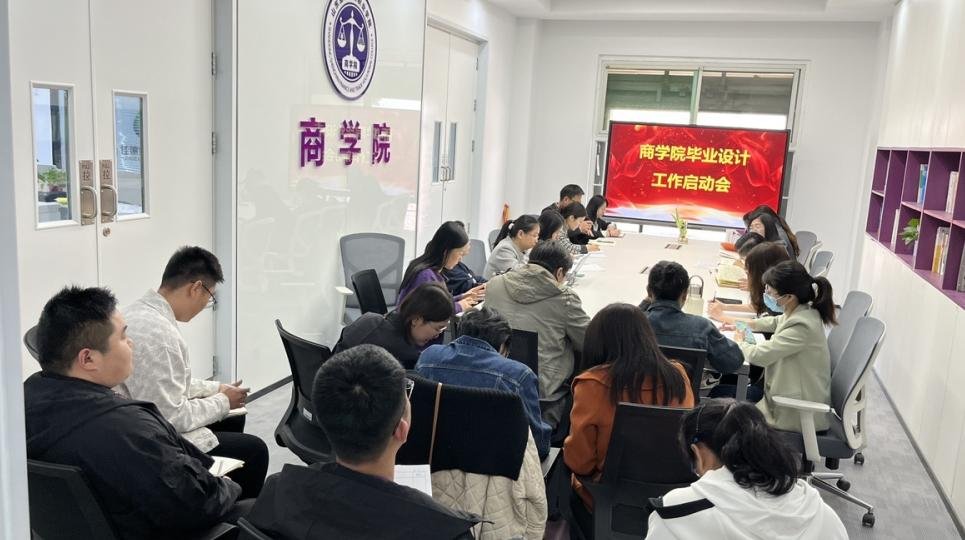 2025年4月10日中午,商学院在学院会议室415召开2026届毕业设计工作启动会,全面部署新一届毕业设计工作。学院副院长胡正、全体专业教师及辅导员参加会议,会议由教学秘书张丙英主持。