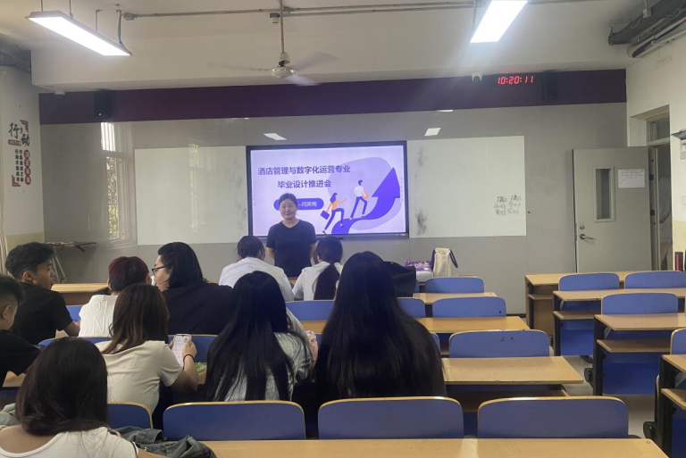 为切实推进2023级酒店管理与数字化运营专业学生的毕业设计工作,确保学生能够高质量完成学业任务,6 月 10 日上午,商学院闫英梅老师在咏望楼404教室组织召开了毕业设计推进会,2023 级酒店管理与数字化运营专业2班全体学生参加了此次会议。