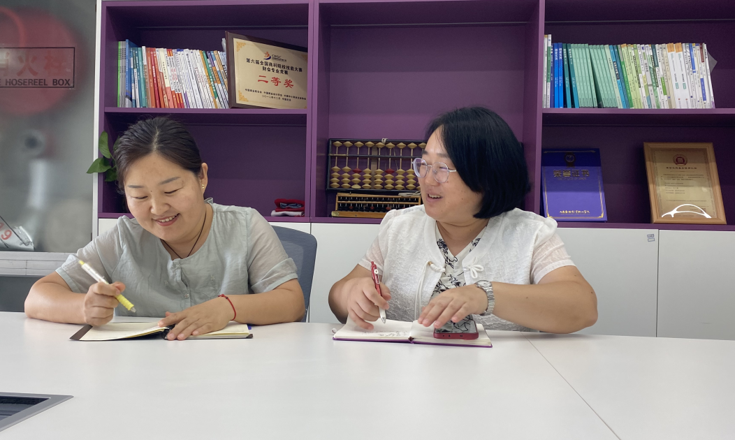8 月 22 日上午,工商管理教研室主任王君萍与专职教师闫英梅,就 2025 级工商企业管理专业人才培养方案进行了深入的探讨与修订。