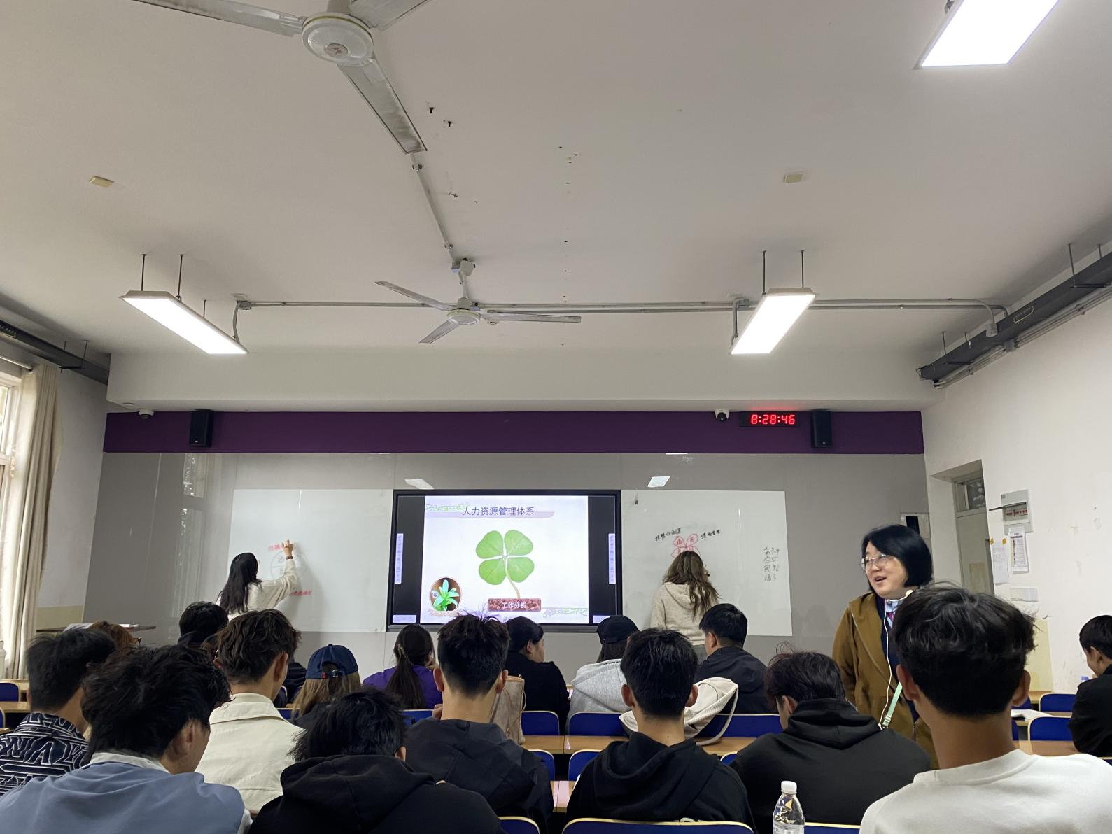 课后研讨会上,观摩教师对“四叶草分析体系”的教学创新给予高度评价。闫英梅老师表示:“将抽象理论转化为可视化框架,既降低了学生的理解门槛,又培养了系统思维,为专业课程教学提供了可借鉴的创新思路。” 参与学习的 2025级工商管理专业学生田奕雪说:“以前觉得人力资源体系很零散,现在用四叶草一梳理,每个模块的作用和关联都清晰了,以后分析问题也有了方法。”