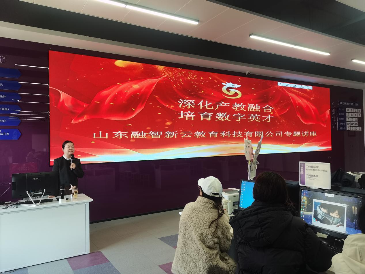 为深化产教融合,创新校企协同育人机制,助力学生精准把握财税数字化转型前沿,2025年11月26日下午,一场以“深化产教融合,培育数字英才”为主题的专题讲座在圣翰融智·财务云共享中心产业基地举行。山东融智新云教育科技有限公司总经理姜珏琪应邀担任主讲,为产业基地全体在训学生带来了一场紧扣数字时代脉搏的深度分享。