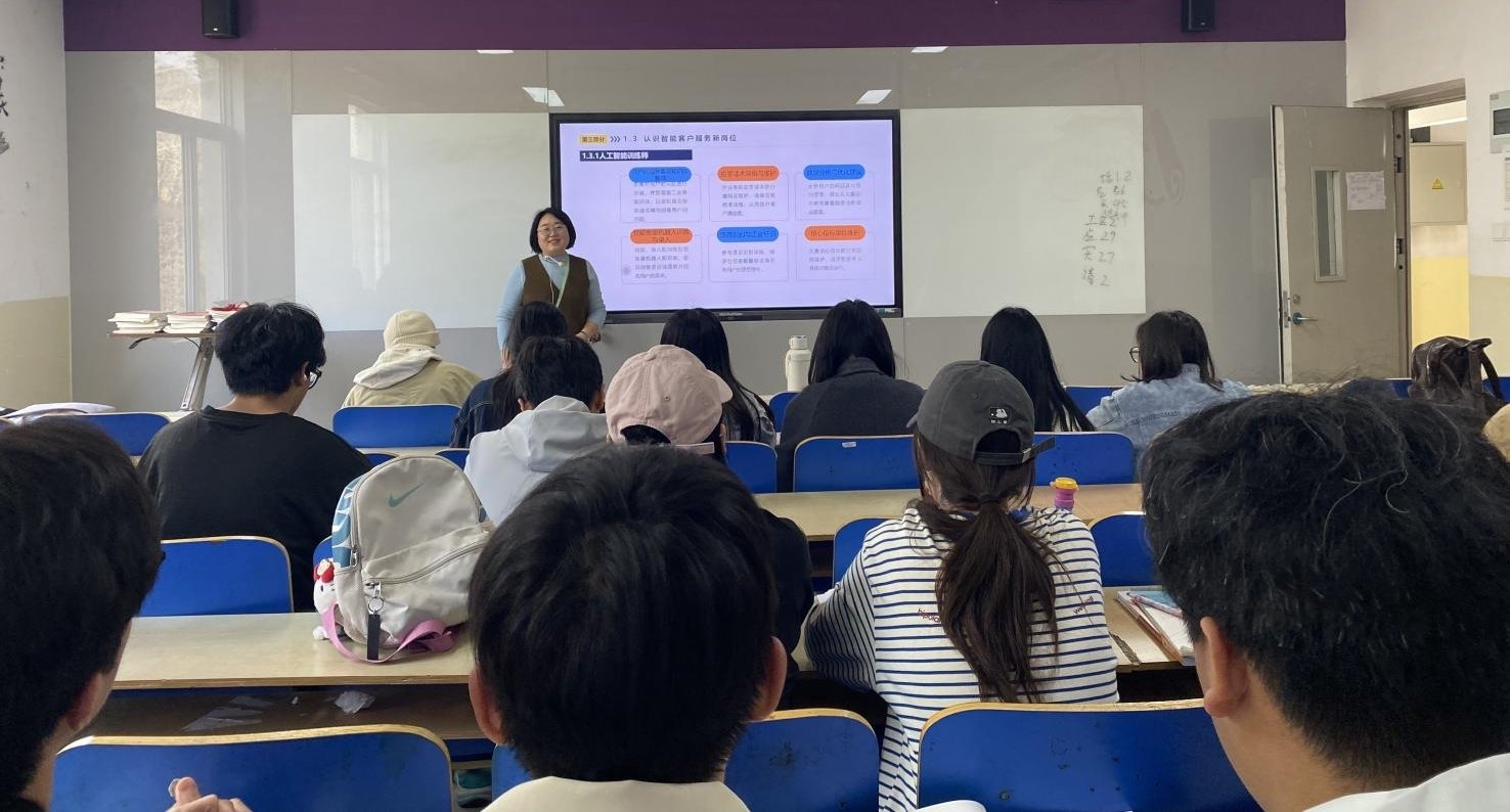课堂上,王君萍老师围绕“认识智能客户服务新岗位”核心主题展开教学,结合行业发展趋势与岗位实践需求,系统拆解人工智能驱动下客户服务岗位的转型方向、能力要求与职业路径。通过结构化的知识框架,王老师清晰梳理了智能客服岗位的核心技能模块,将理论知识与行业真实案例深度融合,引导同学们理解传统客户服务向智能化、数字化转型的行业逻辑,把握岗位发展新机遇。