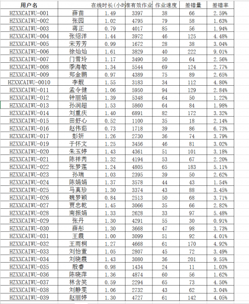 第三周平均差错率4.20%,平均速度63字符/分钟,人均完成字符3353,本周由于受学校网络状况影响,停课两次。平安后台任务不充足。