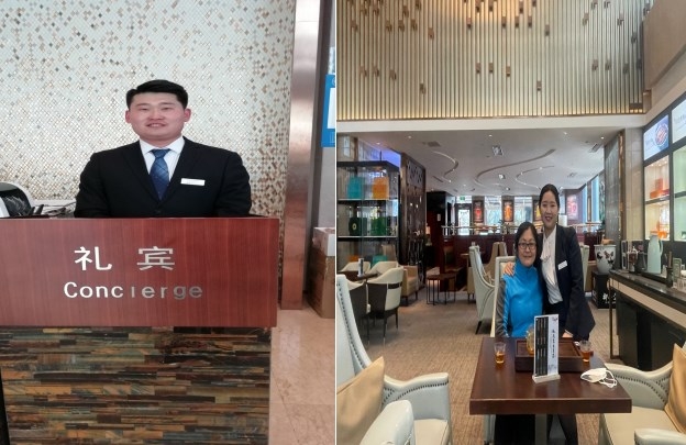 在酒店调查的过程中,我们还遇见了2015级旅游管理和酒店管理的毕业生,通过交谈得知,他们毕业之后一直在酒店工作,发展前景还是比较光明的,但是大部分同学都从酒店流失了,现在坚持在酒店这个行业的同学少之又少,其中原因非常值得我们深思。其中2015级酒店管理专业的学生吕帅同学目前是礼宾部主管,很快就会升为大堂副理。他们对学弟学妹的想说的就是:英语非常重要,一定要好好学英语,在高星级酒店经常接待外国客人,对英语的要求是非常高的,目前酒店能够接待外国客人的只有极少数的工作人员。