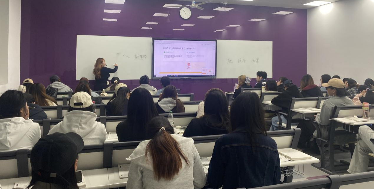 针对青年就业迷茫难题,贾晶鑫分享实用职业突围方法,倡导以长板思维替代短板思维,构建硬技能与软技能结合的核心竞争力,通过“行动—反馈—调整” 闭环实现快速成长。她引导学生从兴趣、能力、性格、价值观四大维度探索自我,借助科学测评工具明晰自身优势,树立成长型思维与长期主义职业理念,以积极心态应对职业挑战。结合自身转型心理咨询创业者的经历,她鼓励同学们遵从内心、勇于试错,在热爱的领域实现自我价值。