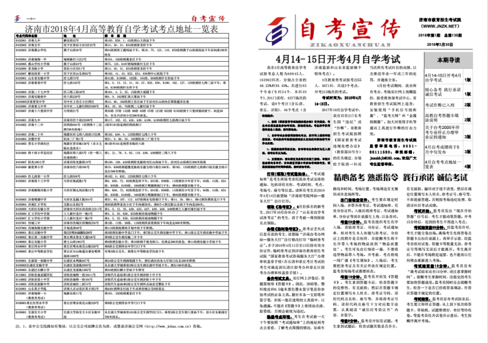 山东省高等教育自学考试将于2018年4月14-15日进行,山东圣翰财贸职业学院共有144人报名参加本次考试,报考共计299科次。主要考试地点在济南市长清区第一初级中学、长清区石麟小学和长清区实验中学三个学校。