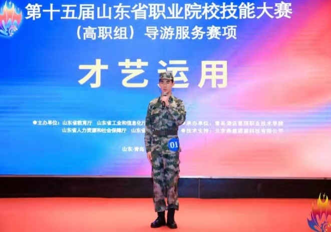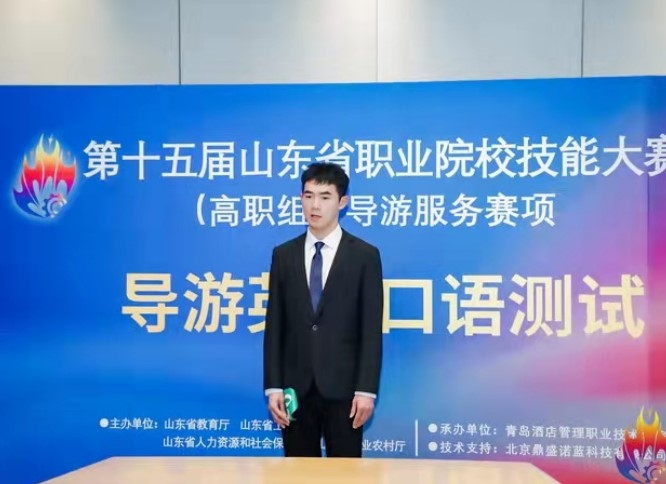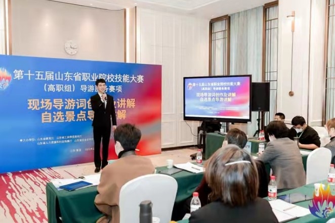 12月22日第十五届山东省职业院校技能大赛(高职组)导游服务赛项如期在青岛鑫江温德姆大酒店举行。