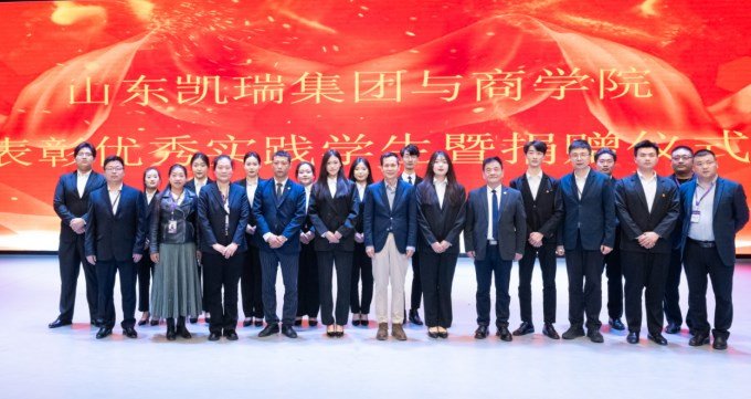 3月21日下午,商学院在第二报告厅举办了一场别开生面的优秀实践学生表彰会,同时见证了山东凯瑞集团向酒店管理专业捐赠专业设备的盛大仪式。此次活动不仅是对学生们优秀实践的认可,也是校企合作深化发展的重要里程碑。山东圣翰财贸职业学院党委书记姚东方、党委副书记姜峤、实习就业办主任冯兴师、凯瑞集团精餐事业部行政总经理徐丙利、商学院院长盖晓艳出席本次仪式。
