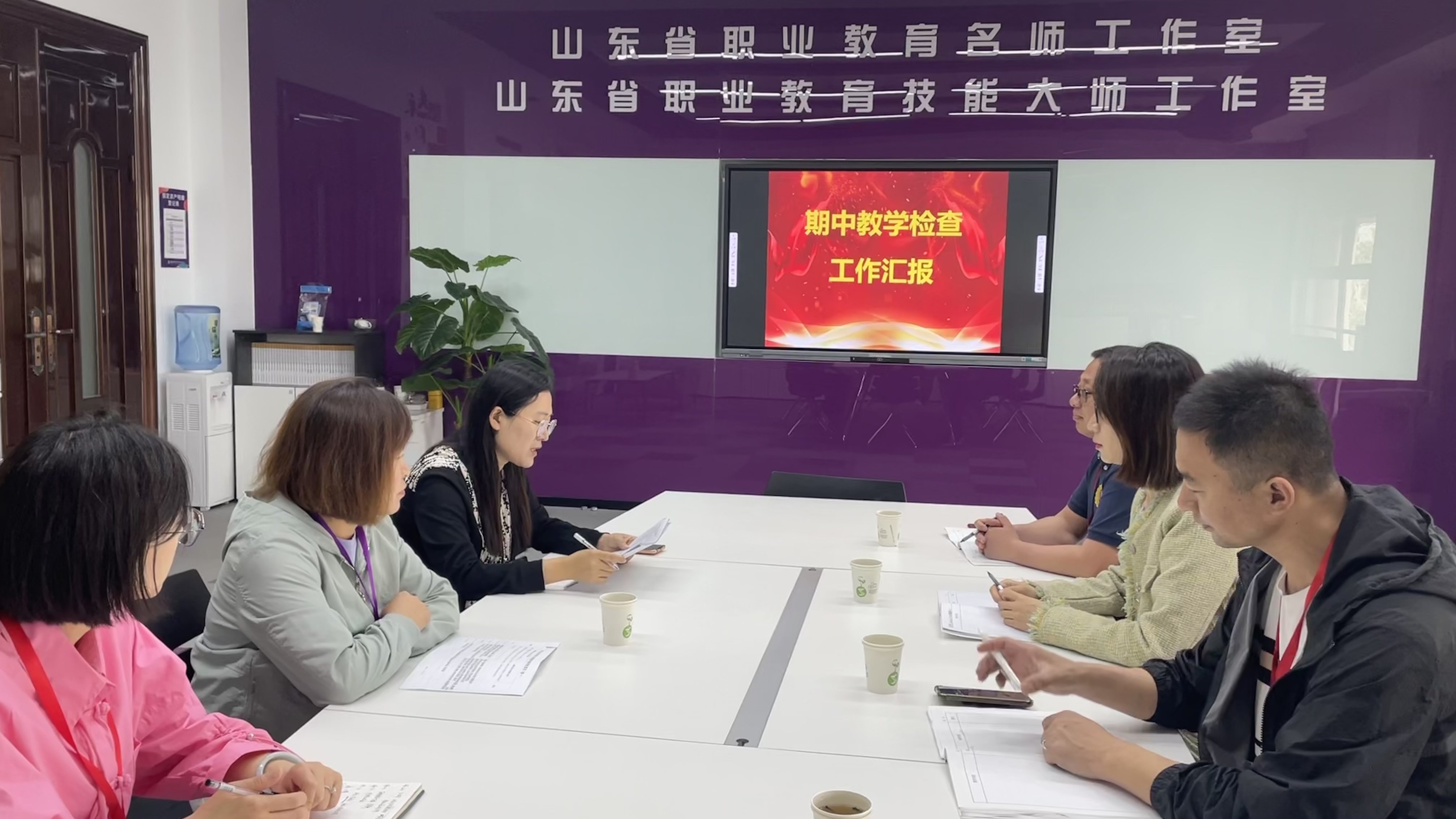 2024年4月28日上午,教务处处长汪娟海、副处长张明哲、杨立涛及其他科室人员来院座谈,并在战少慧名师工作室听取学院期中教学检查工作情况汇报。