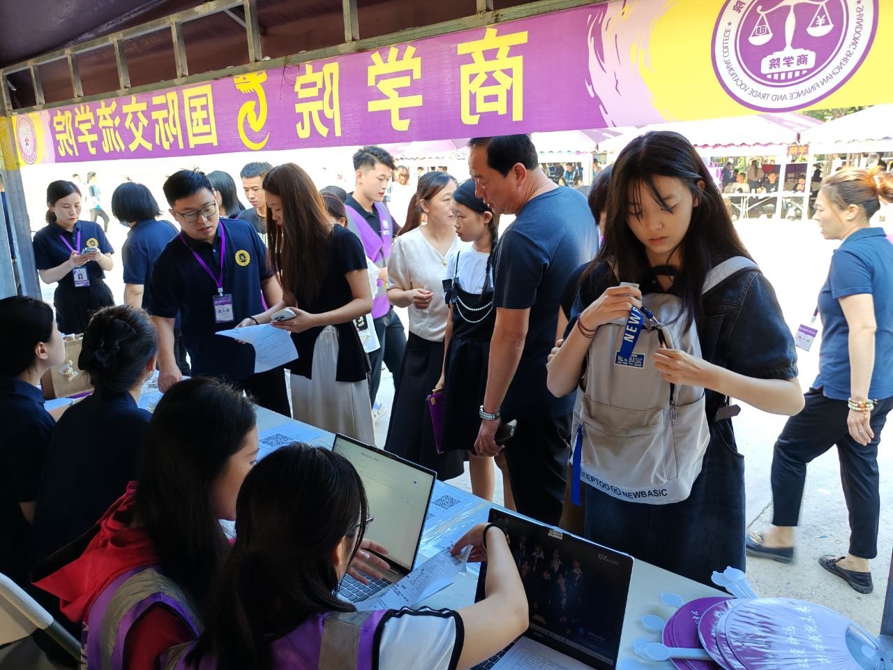 在商学院新生报到处,工作人员和志愿者们早已准备就绪,他们以最饱满的热情迎接每一位新生的到来。报到流程清晰明了,从信息核验、学院登记到领取校园卡、宿舍物资等各个环节都安排得井然有序。新生们按照指示有序排队,顺利完成了报到手续。