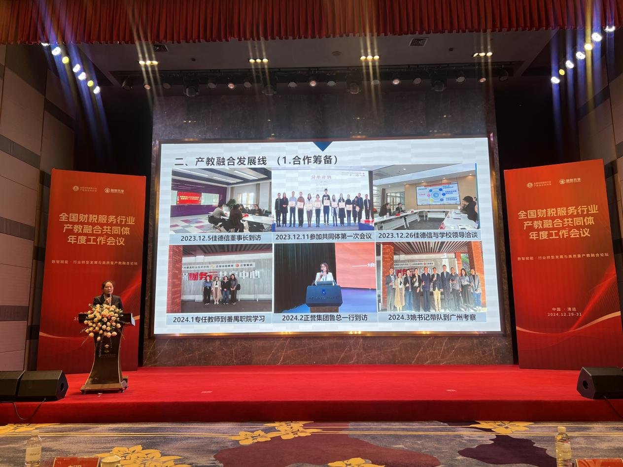 2024年12月30日,全国财税服务行业产教融合共同体2024年度工作会议在广东清远隆重举行。山东圣翰财贸职业学院商学院院长盖晓艳受邀在会议上进行了题为《产教融合在财经类专业教学中的应用与成效分享—以山东圣翰财贸职业学院为例》的精彩分享,她的报告内容丰富、见解独到,获得了与会代表的一致好评。