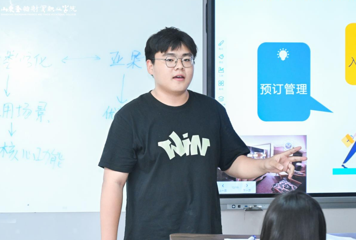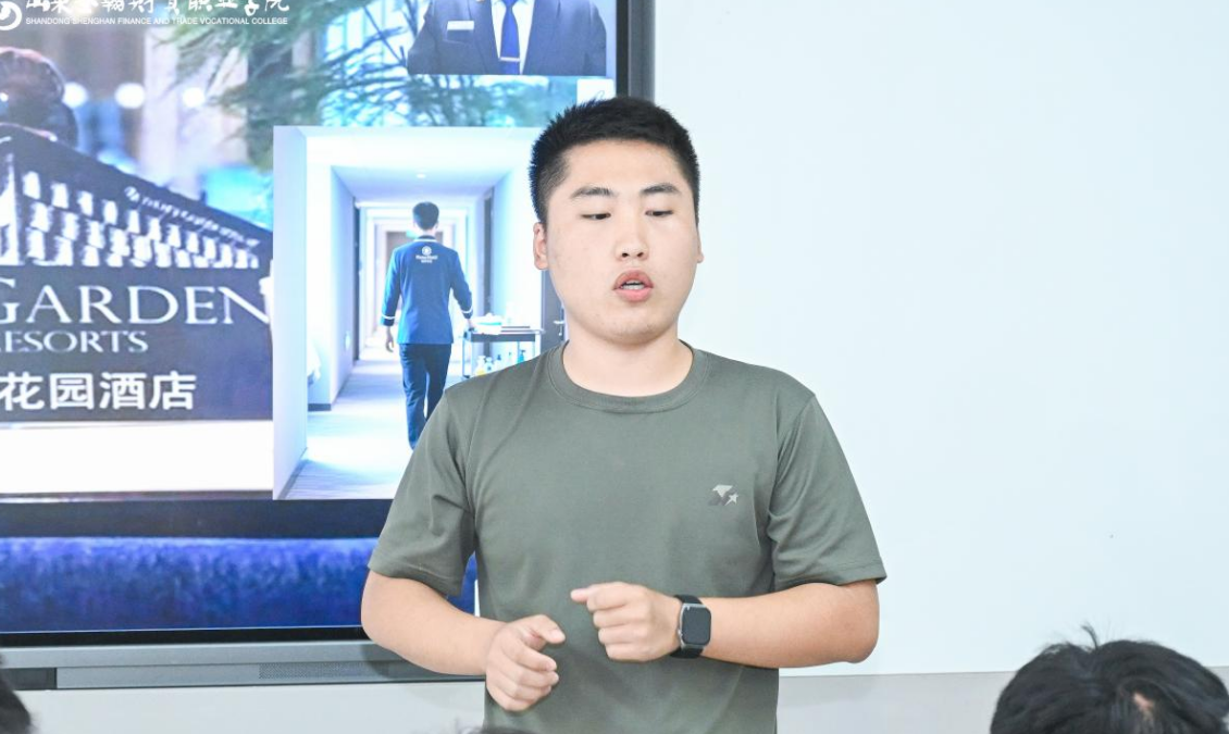 随后的调研汇报环节,各小组学生结合课堂所学与课外调研,展示了对酒店客房数字化应用的独特见解。他们通过详实的数据、生动的案例,分析了当前行业内数字化应用的现状与趋势,展现出扎实的专业素养与创新思维。而工作经验分享环节更是将课堂与实践紧密相连,班内具有两年相关工作经验的刘博文同学为大家分享了酒店客房服务人员一天的工作内容及数字化应用的具体场景,让学生们对理论知识如何落地实践有了更直观的认识。