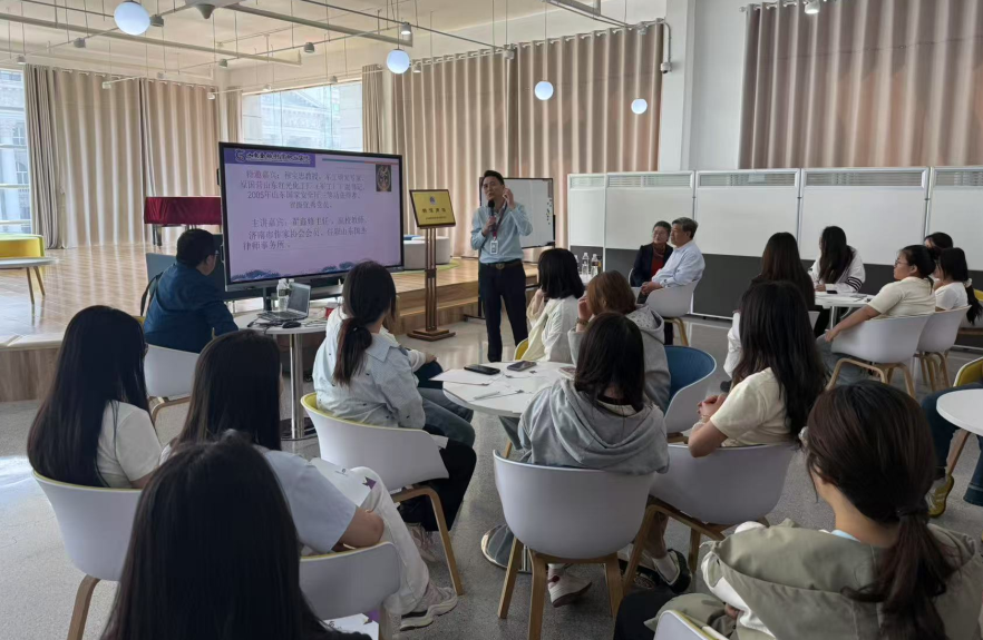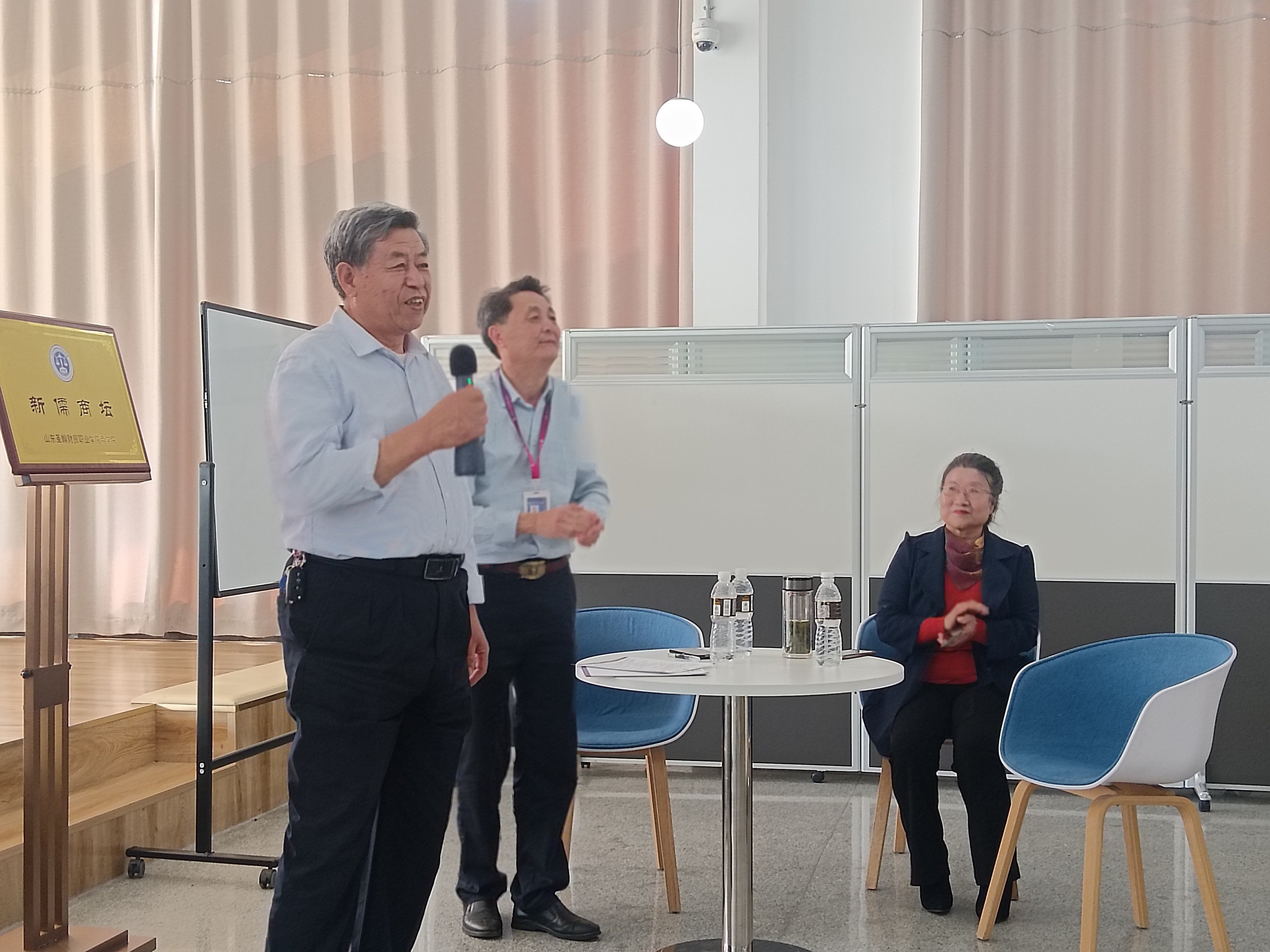 2025年5月16日下午3时,山东圣翰财贸职业学院商学院在创梦空间阅览区举办了“新儒商坛——上善若水 知行合一”活动。活动特邀原山东红光化工厂副书记穆宝忠和高校教师、国学文化沙龙秘书长、国杰律师事务所行政主管翟鑫修担任嘉宾,为商学院部分教师、2024级金融服务与管理专业学生以及学院学生会成员,带来了一场兼具深度与启发的思想交流盛宴,于传承与创新中启迪学子智慧。