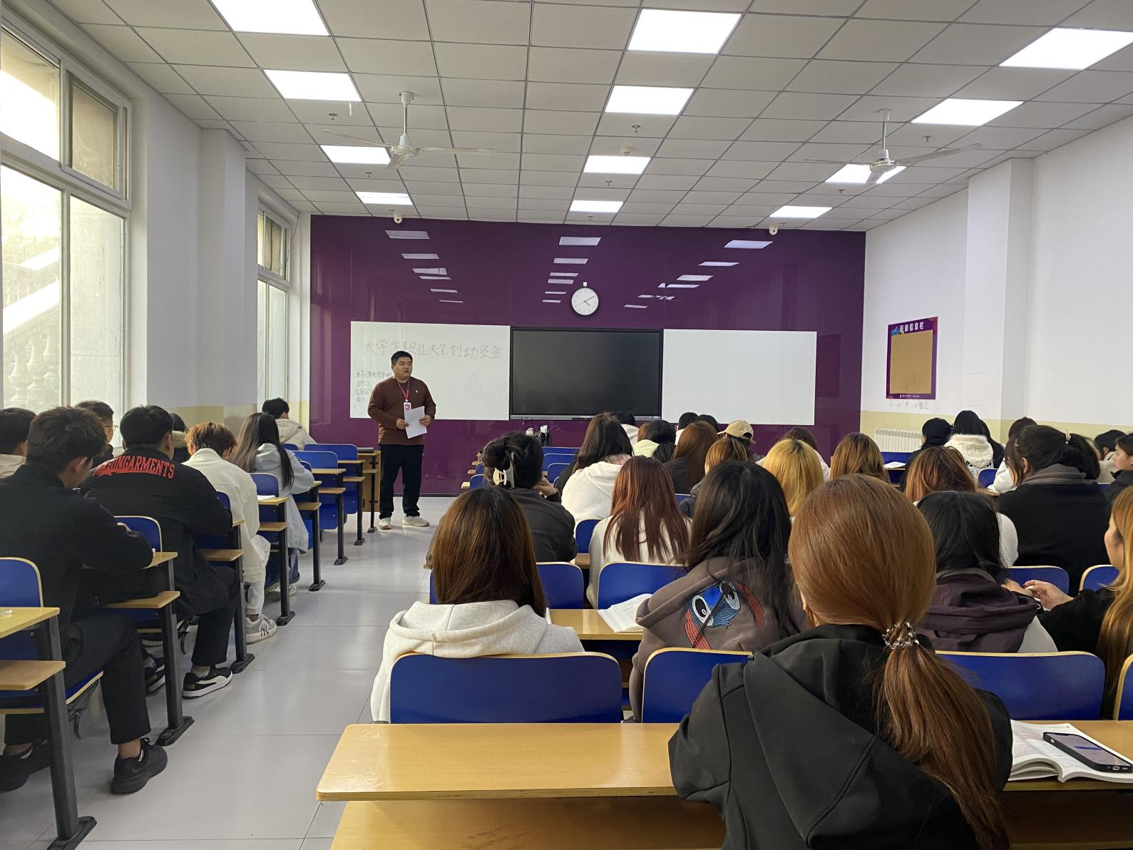 在互动交流环节,景伟老师耐心解答了同学们关于赛事细节、职业方向选择等方面的疑问,现场氛围热烈。同学们纷纷表示,通过此次动员会,不仅对职业生涯规划有了更清晰的认识,也激发了参与赛事的积极性,将以此次大赛为契机,认真梳理职业发展思路,为未来的职业道路打下坚实基础。