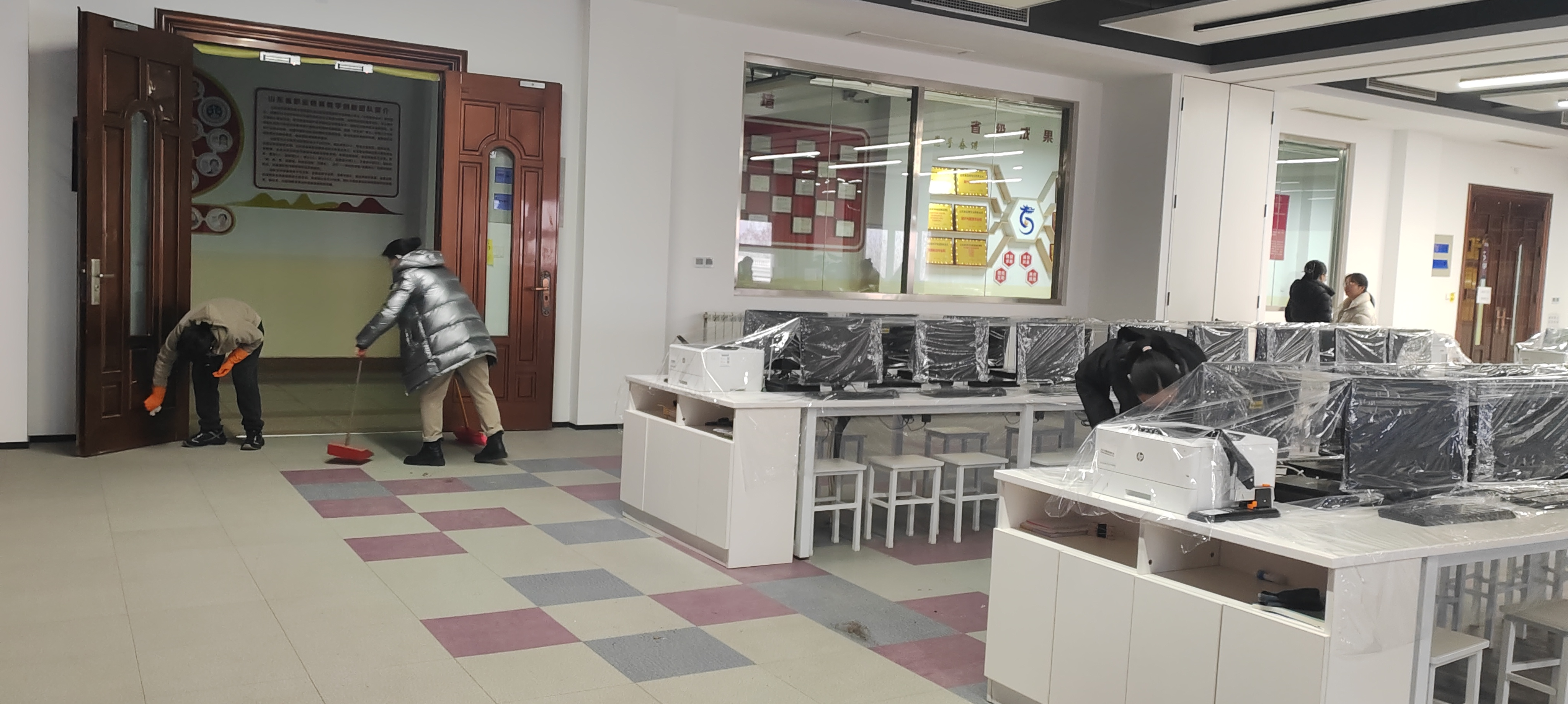 老师们热情满满、分工协作,手持扫帚、抹布、拖把等清洁工具,开启了细致全面的清洁工作。办公区内,大家各司其职、默契配合,认真归置桌面文件、擦拭门窗玻璃、拖扫地面灰尘、清理角落杂物,让每一处办公空间窗明几净、整齐有序;产业基地里,老师们针对实训场地、设备周边、通道区域等重点位置逐一清扫,仔细擦拭实训设施、规整实训物料、清除卫生死角,全力为后续实践教学、产业实训打造干净整洁的实训环境。从办公区到产业基地,处处都是老师们忙碌的身影,大家相互帮忙,欢声笑语间,原本稍显沉寂的区域焕然一新,春日里的校园更添了几分清爽与生机。