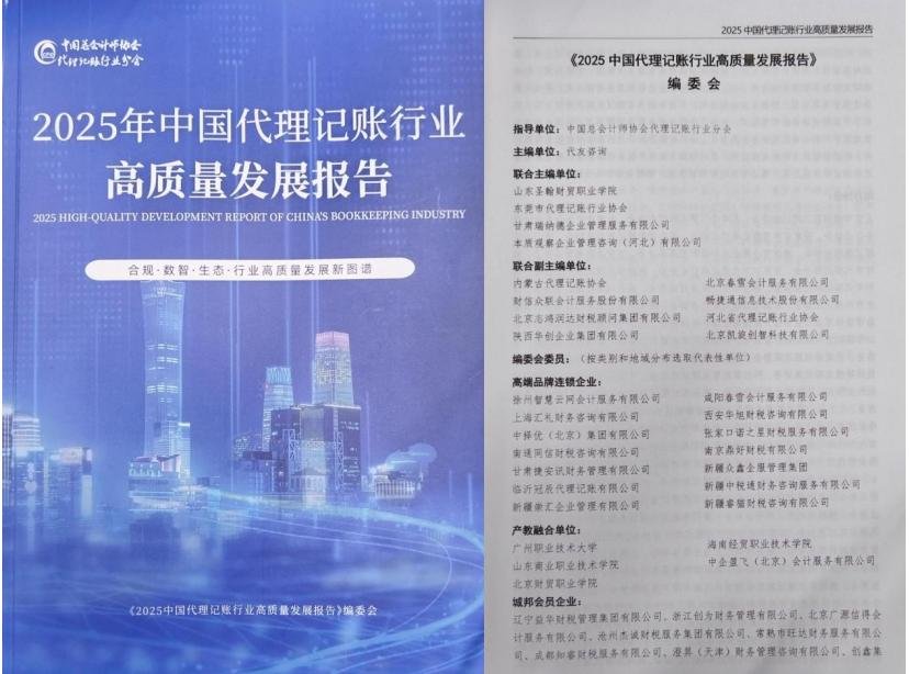 近日,由商学院参与编写的《2025年中国代理记账行业高质量发展报告》正式发布。该报告由中国总会计师协会代理记账行业分会指导,代友咨询担任主编单位,山东圣翰财贸职业学院商学院作为联合主编单位深度参与其中。