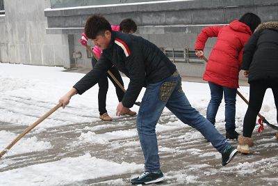 整个校园都处在浴“雪”奋战的扫雪氛围中