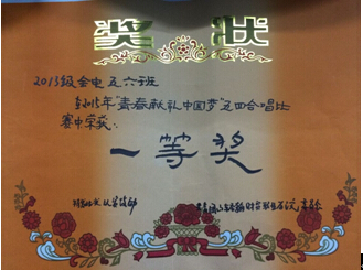 第一首必唱歌曲是《歌唱祖国》。在辅导员朱太亭的带领下,我们以饱满的精神,嘹亮的嗓音在第一轮比赛中以平均分88分的成绩排名第三。我们13级会电五六班的全体同学衷心祝愿圣翰的明天会更好!