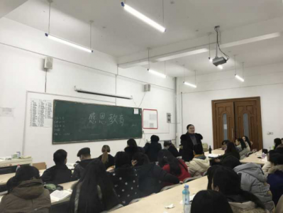 2017年1月2号,辅导员赵焕丽举行了以“感恩于心,与爱同行”为主题的感恩教育班会。