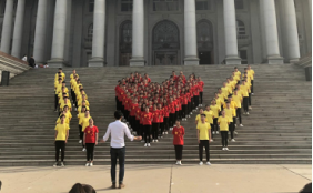 为了弘扬五四爱国主义精神,继承共青团优良传统,激发我们爱祖国、爱生活、爱学习的热情,展示我们积极向上的精神风貌,2018年4月9日我们学校在主教学楼下举行了一场激烈的“红红的五月”五四合唱比赛。