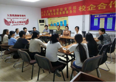 2018年8月27日,山东圣翰财贸职业学院,财贸院王院长,李副院长来看望正在山东天赋大业税务师事务所实习的学生们。
