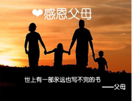 感恩,是中华民族的传统美德,是构建社会主义和谐社会的基础,是实现赶超跨越的精神动力。让我们一起对父母说一声:“我们爱您”让我们一起行动,知恩图报学会感恩,冬天就会不再寒冷黑夜就不再漫长,幸福和快乐就时刻陪伴在你我身边。