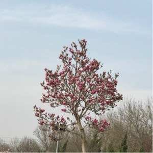 花开时异常惊艳,满树花香,花叶舒展而饱满,但花期短暂,但开放之时特别绚烂,代表一种一往无前的孤寒气和决绝的孤勇,优雅而款款大方。