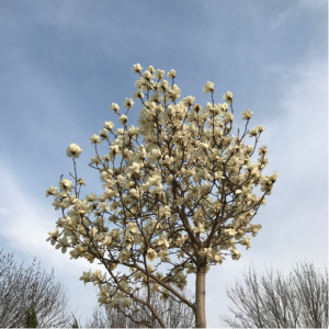 玉兰经常在一片绿意盎然中开出大轮的白色花朵,随着那芳郁的香味令人感受到一股难以言喻的气质,委实清新可人。因其株禾高大,开花位置较高,迎风摇曳,神采奕奕,宛若天女散花,非常可爱。