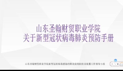 对于近期的新型冠状病毒,山东圣翰财贸职业学院开展了防疫活动,同学们虽然在家里,也需了解新型冠状病毒,对此,我校组织全体师生通过观看视频,答题测试等方式对病毒进行进一步的了解。 通过了解,也让我们知道如何正确的预防病毒,确保自身及周围人安全。