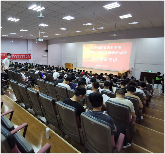 在“大众创业,万众创新”的形势背景下,为深入推进创新创业工作的开展,全面提升创业教育及服务工作,指导大众科学有效地开展创新创业项目,2020年6月28日上午,我校于第一报告厅举行了我校2020年第一期SYB创业培训开班仪式。本次培训讲座由我校创新创业学院盛院长主持,特邀长清区人力资源和社会保障局副局长、大学生就业服务中心主任窦进科为本次仪式发言,2018级部分学生参与其中。
