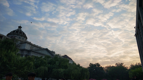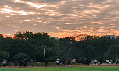 伴着阵阵花香,掺着落叶与嫩土味道的徐徐清风,带来了圣翰的秋天。 蔚蓝色的天空,在深秋时节,一尘不染晶莹透明。朵朵霞云照映在洁白的房顶上,洁白的房顶增添了浮云的彩色,似有微波起伏,远远望去格外绚丽。 “落霞与孤鹜齐飞,秋水共长天一色。”秋天的黄昏总是来得格外快。还没等山野上被日光蒸发起的水气消散,太阳就落进了西山,可是,山谷中的晚风带着浓重的凉意,驱赶着白色的雾气,向山谷下的操场游荡。而山峰的阴影越来越浓,渐渐和夜色混为-体,但不久,又被月亮烛为银灰色了。