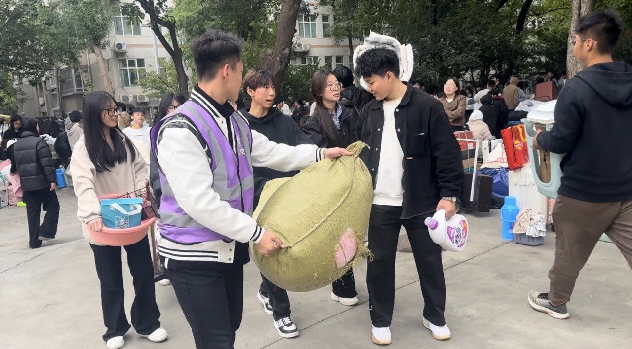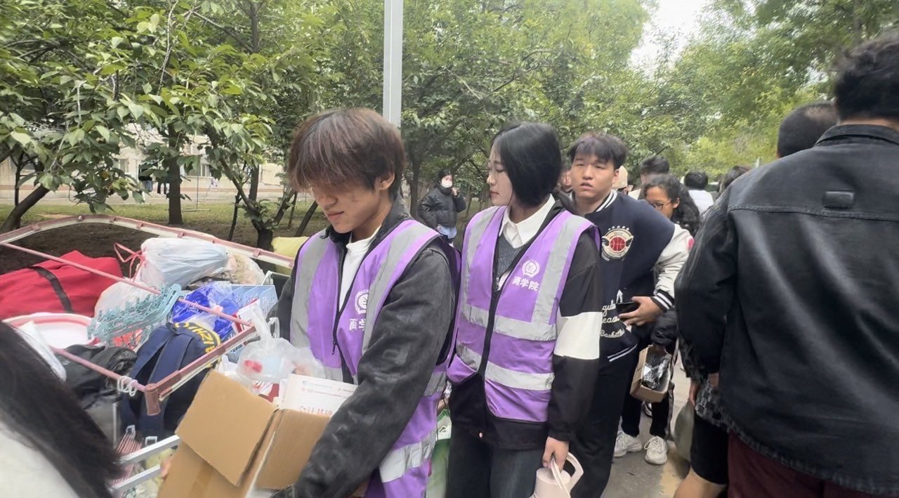 在宿舍调整现场,志愿者们身着统一的志愿者服装,佩戴工作牌,分工明确,各司其职。他们有的负责搬运行李,有的负责整理床铺,还有的负责引导同学们有序入住。虽然天气较为凉爽,但志愿者们汗流浃背,但他们依然保持着饱满的热情和高效的工作状态,确保了宿舍调整工作的顺利进行。