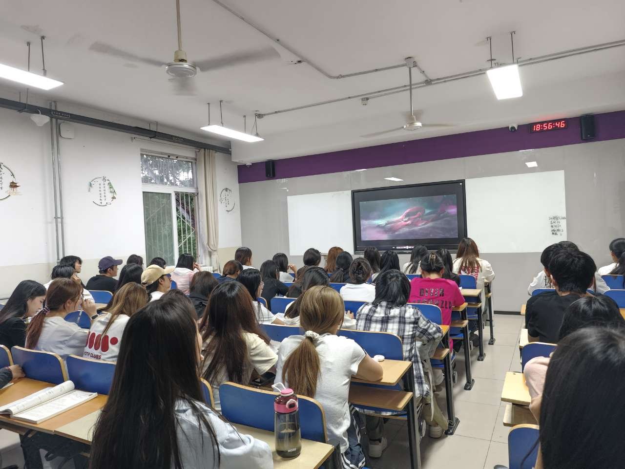 本次活动覆盖商学院全体学生,以班级为单位在固定自习室集中观影。各辅导员提前调试设备、布置场地,将自习室打造为“心灵放映厅”。活动当晚,各班级自习室内,同学们围坐一堂,共同沉浸于影片《深海》的温暖叙事中。影片聚焦自我认同、人生意义等议题,以深刻感人的方式引发学生共鸣。