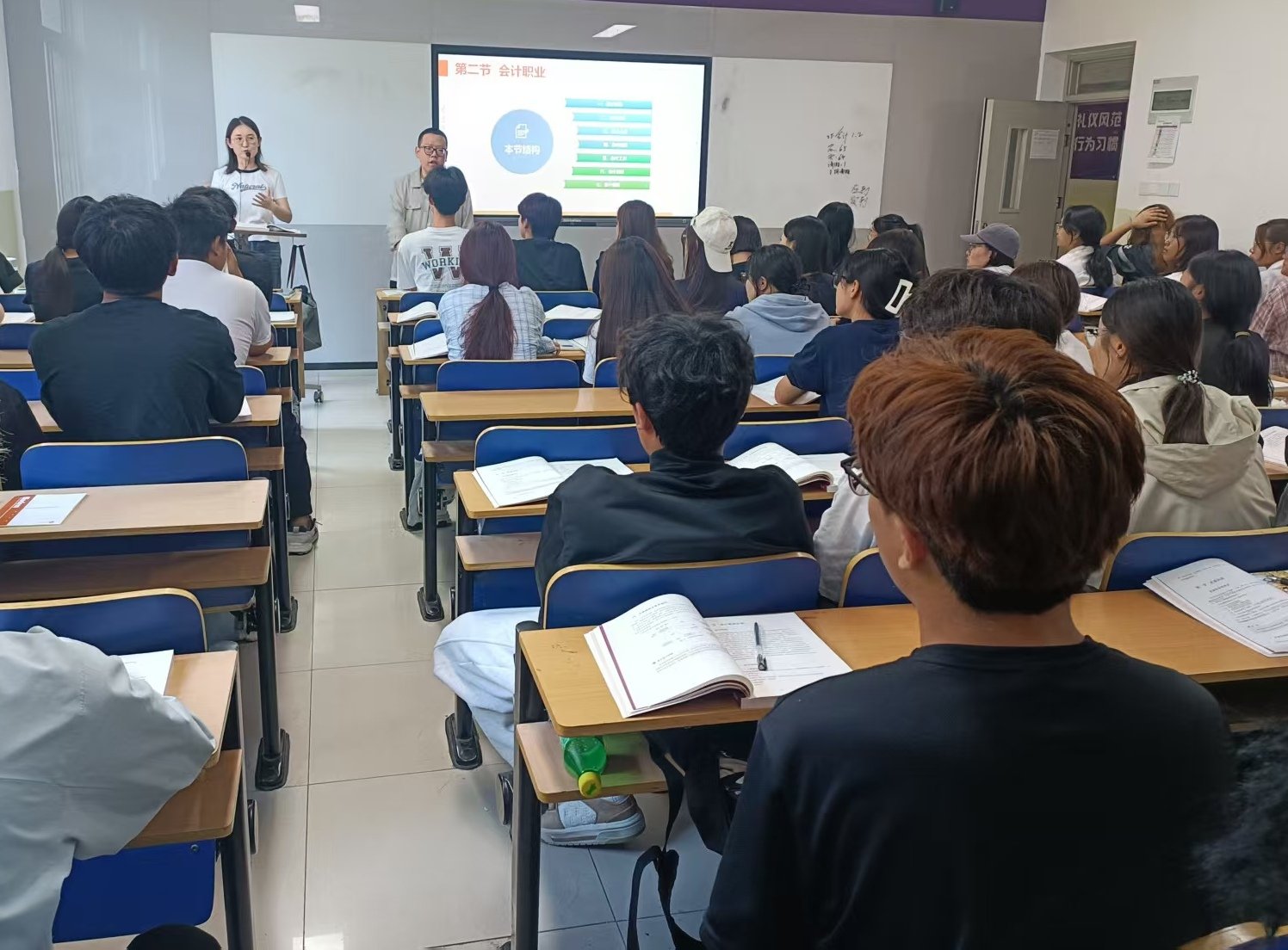 分享会上,陈南结合自己在乐邦财税的实际工作经历,向新生们生动讲述了财税公司的日常运作、岗位职责以及工作环境。他提到,课堂上学到的专业知识是工作的基石,无论是账务处理、税务申报还是数据分析,都离不开在校期间打下的理论基础。他深切体会到,将理论知识与实践操作紧密结合,不仅能更快地适应岗位要求,也能更深入地理解行业的运作逻辑。