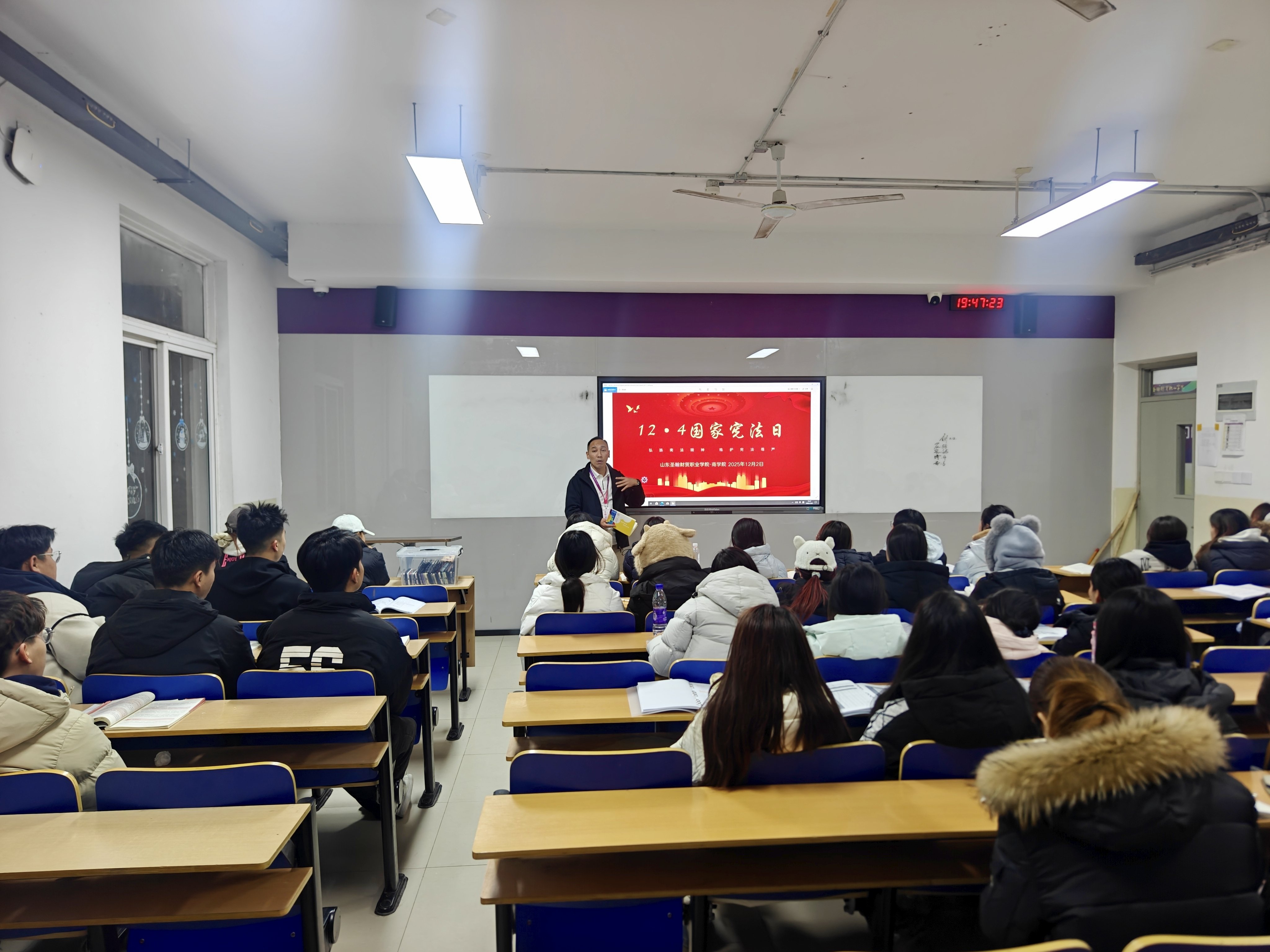 “宪法宣誓不是形式,而是一份沉甸甸的责任承诺”,李占贞老师在宣誓环节后强调,宪法与每个人的成长息息相关,从受教育权的保障到就业创业的支持,从财产权的维护到社会公平的守护,宪法的精神贯穿于学习生活的方方面面。他结合校园中可能出现的权益纠纷、网络言论规范等案例,深入浅出地讲解了“知法、懂法、守法、用法”的重要性,让抽象的法律条文转化为可感知、可践行的生活准则。