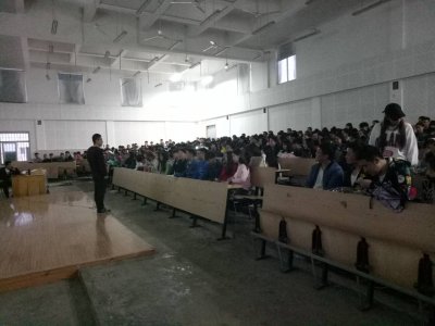 2017年4月19日晚六点二十分在D5报告厅由我校学生处宿舍管理科科长杨其义对我院所有学生举行有关"一屋不扫,何以扫天下"的主题讲座。杨科长的宣讲绘声绘色,大家听得专注认真。