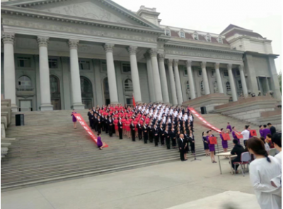 本次活动主要内容为以纪念五四运动为中心,以“红红的五月”为主题展开的。活动共分为三个环节,第一个环节为选择歌曲,弘扬中国精神,团结统一,爱好和平,勤劳勇敢,自强不息,发扬正能量,铭记五四运动的含义。第二个环节为练唱歌曲,同学们积极配合,努力练习,声音明亮高亢,感情丰富,为班级和学院争光添彩。第三个环节为合唱表演,,学院的学子们明媚的笑脸,整齐的队形,声音洪亮的歌声成为了学校的一道亮丽风景线。