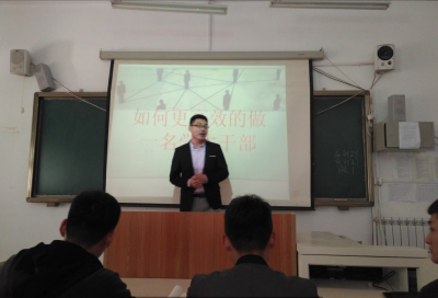 活动由徐晓龙老师围绕“如何更高效的做一名学生干部”为主题,讲解了对于学生会干部这一职务的见解,首先,徐晓龙老师以电车理论为例,与同学们展开讨论,强调了作为干部做事时应明确利弊,果断干脆。随后又提出了为什么要进学生会以及在学生会里怎么做等问题,讲解了管理和领导的区别,并指出上传下达和做事效率的重要性,要及时做好工作反馈,做到统筹兼顾,学生深有体会。最后,徐晓龙老师以一个“三行理论”告诫大家,做事要时刻保持信心,坚持总会有收获。