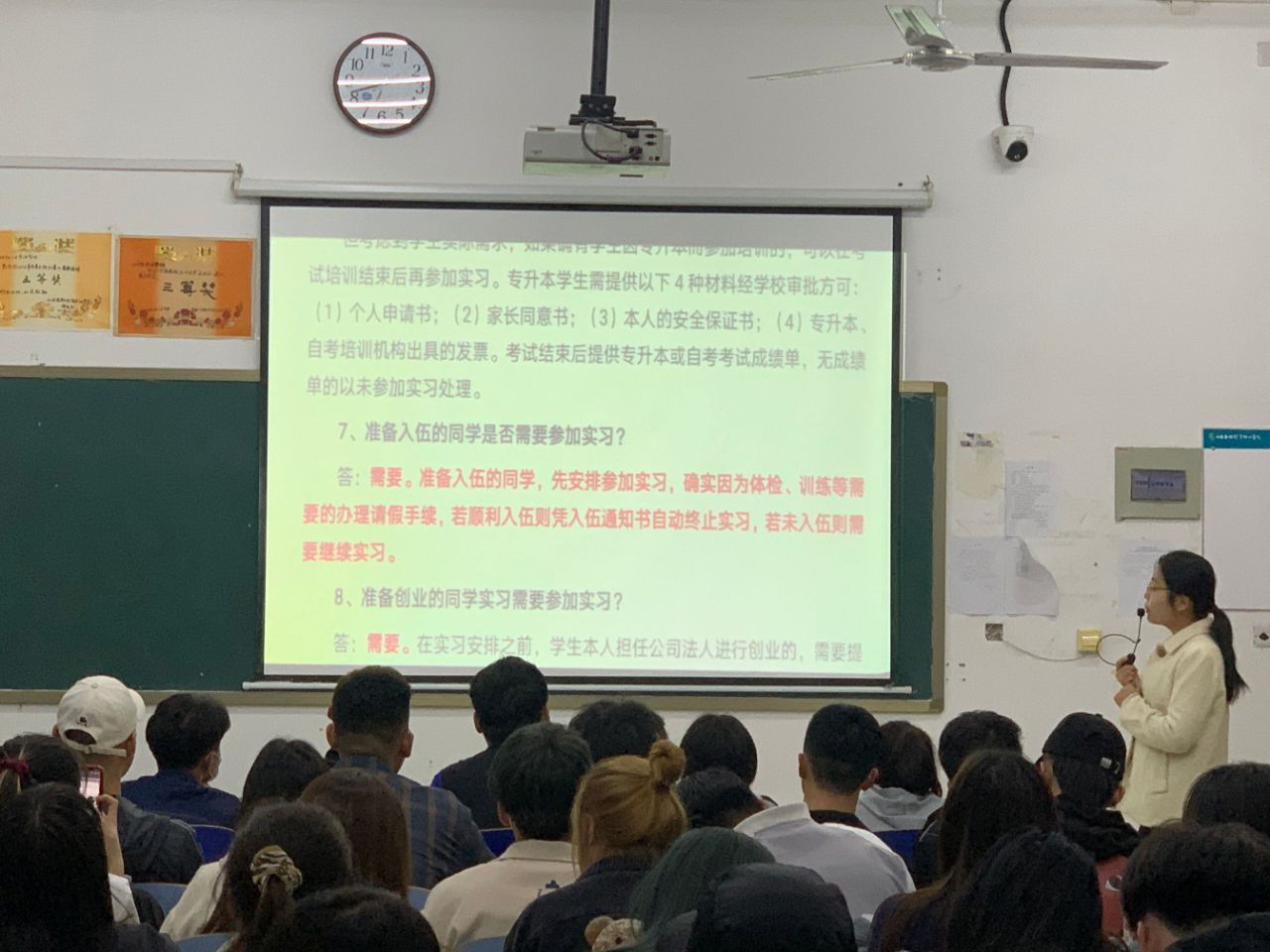 为提高实习生安全意识,及时发现、消除安全隐患,确保实习任务顺利完成,4月15日,工商管理学院举行2022届学生实习安全教育宣讲会。