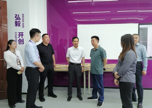 朱军利一行参观了产业基地的文化墙,听取了产业基地的介绍,仔细观看了学生的实践过程,查看了学生的作品,并与学校领导、产业基地老师进行了细致交流。朱军利指出,现在会计行业的数字化变革要求学生及时转型,原来只会记账的会计很容易被社会淘汰。代理记账行业的专业性程度不够高,限制了行业的发展,圣翰融智云财务共享产业基地的建设恰逢其时,恰到好处。